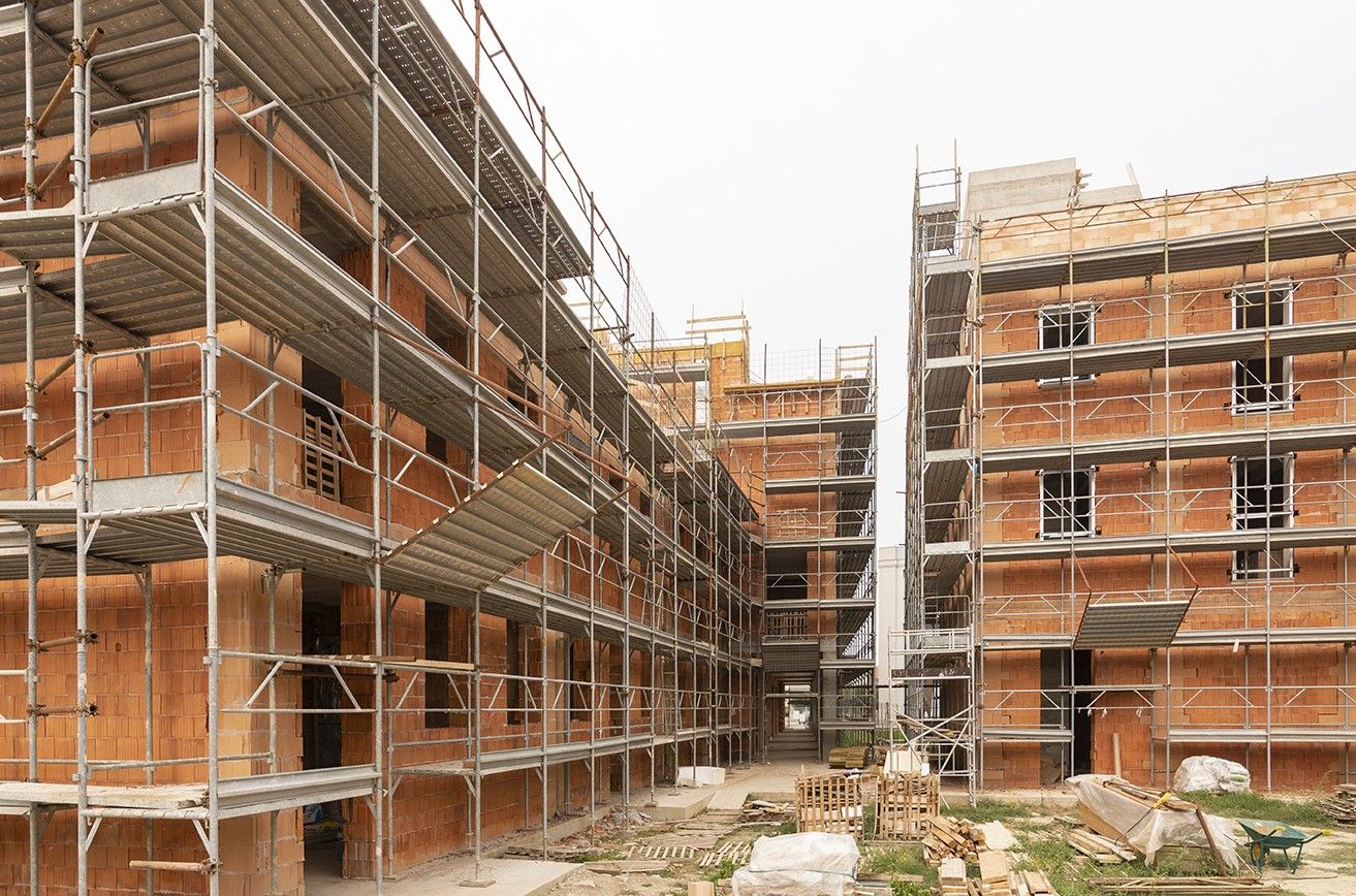 I nuovi edifici creano due isolati che perpendicolari tra loro cingono e racchiudono la Piazza giardino sui lati est e sud. La tipologia residenziale è quella degli edifici in linea e a schiera per case singole o piccole palazzine per appartamenti. L’architettura è quella calda e tradizionale dei piccoli centri emiliani e di cui Pieve di Cento è uno degli esempi più belli.